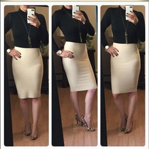 Absolute adorable and figure flattering bandage skirt. One of my fav skirts of all time. I've been wearing these for years. Holds everything in place. Great support for tummy area as well. Color is creme brรปlรฉe ๐๐ modeling small.