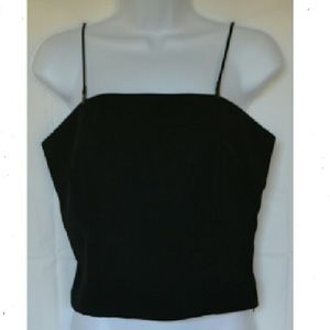 VM Notre Nam Dressy black cami tank. Adjusting spaghetti straps 12". Side zip. Fitted darting. Size S. L 13" (w/o straps) B 32" Base 26" 100% Microfiber Poly. NWOT