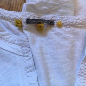 White henley by little yellow button from Anthropologie. 3/4 length sleeves, button down front, center seam down the back, from Spring/ Summer '16.