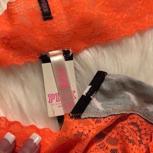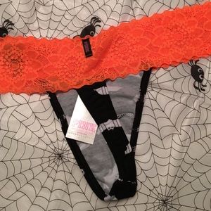 ONLY 1 LEFT♨️NWT Victoria's Secret Pink Halloween...Black w/White Bats & White Pink. Orange Lace Waistband w/ Black Glitter👻 Please feel free to ask questions...