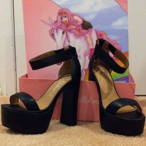 Black. Worn a few times. 5.25" Heels. 2" platform. Sad to give them up, but I have too many shoes. Definite score for it's next owner.