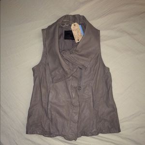 New with tag, All Saints Spitalfields Kadian Gilet Asymmetrical Leather Vest in Taupe.
