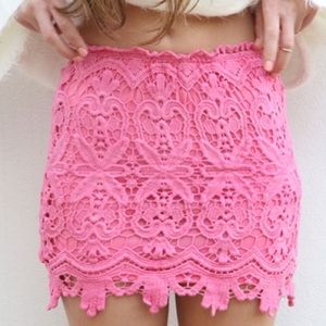 Sabo Skirt Pink Bubble Gum Lace Crochet Mini Skirt