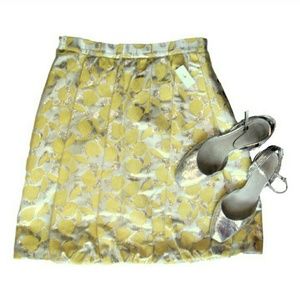 Flawless condition. MOSCHINO Cheap and Chic yellow Jacquard with Silver Leaf pleated skirt with hidden kangaroo pocket. DRIES VAN NOTEN shoes not for sale ...YET! Paired hair with a short sleeve cashmere sweater.