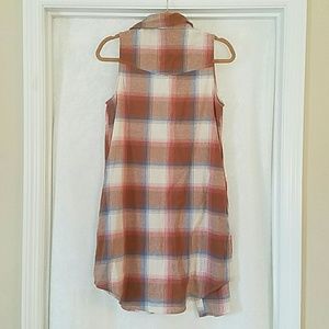 Gently worn JODIFL sleeveless long top with pockets. Plaid print.