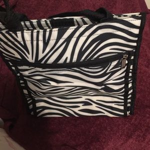 NWOT. A great zebra tote, has a spacious main compartment with a fully lined interior and plenty of room to carry a wallet, cosmetic case, sunglasses, books and small portable electronic devices. Two large exterior pockets offer a large space for those items that require quick access. When bag is filled with contents, hard material bag floor allows tote to be self standing as shown in photograph. Dimensions are 12 x 12 and 4 1/2 inches on bottom. LAST ONE GET it today! 🎁