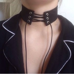 @goddessofmetal it's 39 inches by itself not laced up in the choker