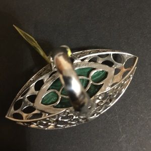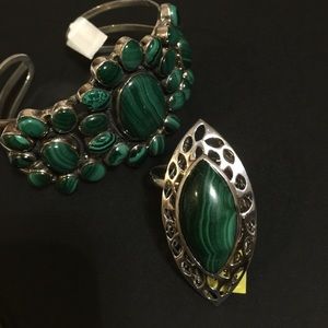 Huge, elongated , African Malachite ring. Platinum overlay sterling silver. Nickel free. Size 9. TGW 31.27 carats.The cuff not included.