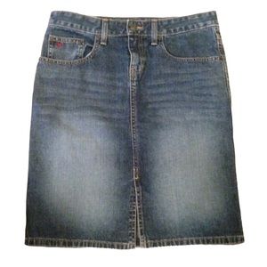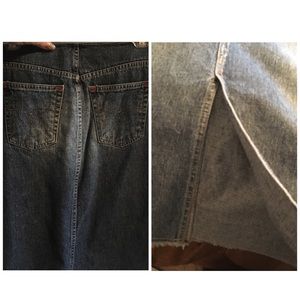 Paris Blues knee length denim skirt with front slit measuring approximately 5"