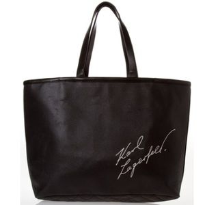 In 2008, Chanel made the quilted flap bag the focus of the Mobile Art exhibition. Screen printed on the bag is the futuristic pavilion created by architect Zaha Hadid. 20 int'l contemporary artists created bags inspired by the elements that give the Chanel Flap its identity. This particular tote was made in limited quantities to celebrate the 2008 event and features a screen printed photo of the pavilion w/ Karl Lagerfeld's signature