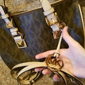 Super cute, 100% authentic, and perfect for travel! Only used rarely, and in perfect condition! Love this bag, but It's just sitting in my closet): Would love to give it a new home! Comes with gold MK logo chain (:
