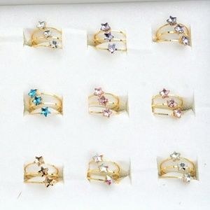 NWT brand new in original packaging! // 3 glistening, sparkly translucent sapphire aqua blue cubic zirconia faceted crystal stars // Textured gold plated triple band spiral ring // Can be worn as a midi ring too // Multiple colors available, see separate listings! // semi precious stones, Nickel & Lead free! // price firm unless bundled