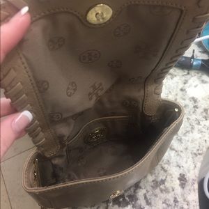Worn only 2-3 times. No stains, excellent condition. Wonderful little purse to wear to the side or as a crossbody! I think it was sold 2 years ago but not 100%. I'm just into black and gold so this has gotten no love! It is very cute and stylish. Authentic Tory Burch.