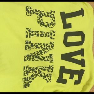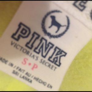 Gorgeous lime green/neon yellow color. Hot pink dog on the front. Zips up. Minor pilling from wearing and washing. Otherwise no flaws. Love the lettering on the back!