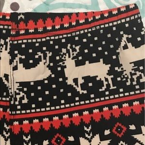 SUPER buttery soft leggings in a super cute holiday print w/ reindeer & snowflake. Colors are black, tan/cream & and burnt red. Similar to LLR OS. They offer the perfect warmth, length & fit. A closet staple for me & a customer 5🌟 rated favorite. Check out my closet for other colors/prints/tunics/lace extenders to pair w/ these & bundle for a discount. Designed to fit sizes 2-12. Waist is a comfy soft elastic band❌NO TRADES❌NO HOLDS❣️New/Never washed or worn