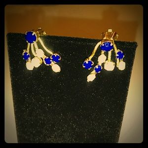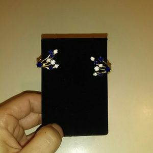 Vintage white and blue genuine stones /gold tone clip on earrings