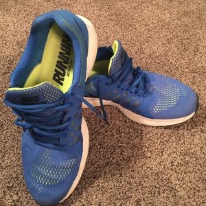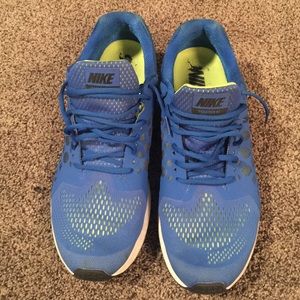 Nike Pegasus mens running shoe. Size 13. Neutral run support. Used less than 5 times. Wrong shoe for my running style. Blue and lime green.