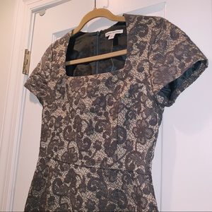 NWT banana republic dress, grey textured pattern. Short sleeve, square neck, form fitting, not stretchy. Knee length. Great for holiday party or work