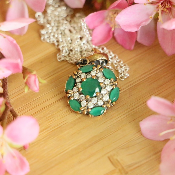 Center Gem Type: Green Jade Stones & Cubic Zirconia