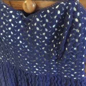 Navy blue, strapless dress with brown belt-- perfect for spring & summer. Size 9.