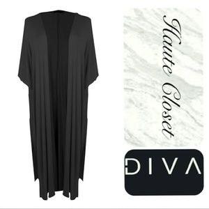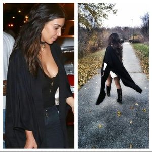 Gorge black kimono duster; new arrival. Open drape style with kimono sleeve; features side slits. Great flow to this piece. Fabulous fall style! Can be twisted, thrown over the shoulder, tied in back cardi wrap style - very versatile! #Seller'sFav