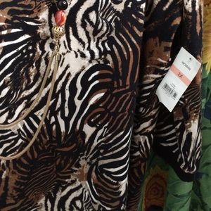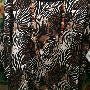 🐆🐅ANIMAL PRINT IN KHAKI/BLK BY KIM RODGERS-NWT-SOFT AND COMFORTABLE-SZ 2X-3/4 SLEEVES-Also have Black Pants by KIM RODGERS ask if interested $20❤️Does not include necklace