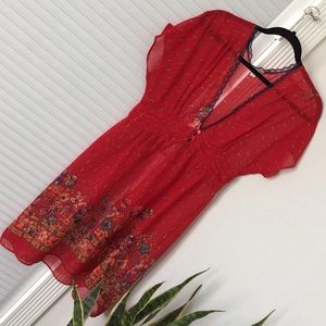 Like new no flaws! Love this beautiful dress just too big on me. Material is sheer but can be worn with leggings. 37" long. 19" armpit to armpit. Elastic waist in the back. Blue lace trim.