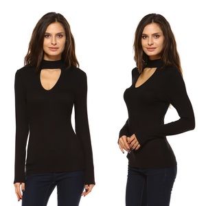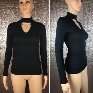 Black Long Sleeve Choker Top