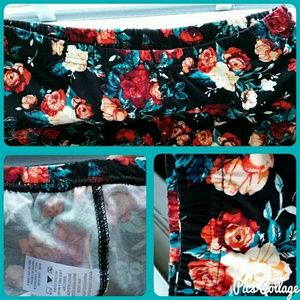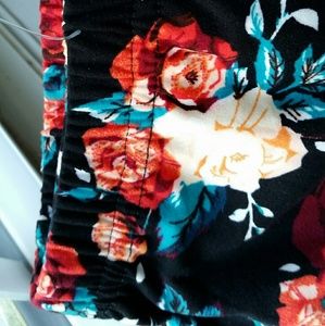 Super soft! Black & floral design leggings, brushed softness in a polyester, spandex blend. "One size" fits 2-12, small-lg. Listed as med for searching purposes.