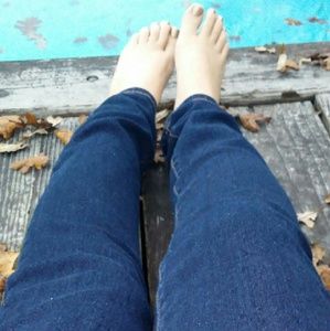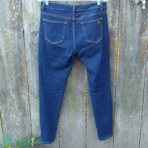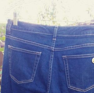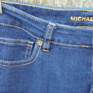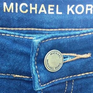 Hi pretty! Really cute jeans, dark, with a skinny leg. Metal MK logo on the butt pocket. The inseam is 28.5 inches.