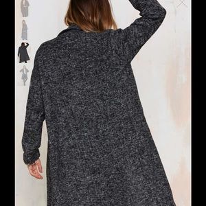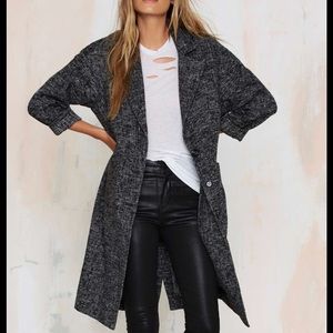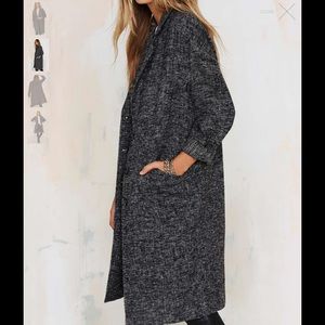 Go marled or go home. The Tatum Coat is made in a thin wool-blend and features a black and gray marled design, notched collar, jetted pockets at front, button-up closure, and slightly oversized fit. Unlined. Layer it over jeans and a tee or a a corduroy skirt and knit sweater.