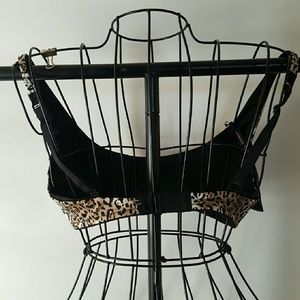 This is a brand new with tags bra enhancer. It's designed to be worn with a bra to help lift the girls😘 Cheetah print on one side, black on the other. Boning in it help maintain shape and lift. Comes with extra straps. Size Small fits a 34. I also have a matching cheeky panty in M, that has never been worn, I can throw in. Also a deep plunge black push up strapless bra in 36B. I've had it for a long time and it has been worn. Just let me know if you want them included or not.