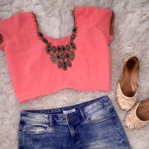 Beautiful vintage coral colored crop top with beading. Can share more on sizing when asked. New condition.