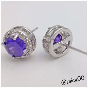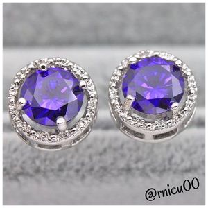 Stunning Round 18K White Gold & Purple Amethyst Stud Earrings!