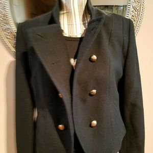 Juicy Couture 100% Black Wool Crop Military Blazer