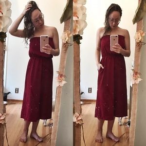 ✨NWOT✨ Strapless empire waist culotte cut romper. ✨high quality vintage not FP✨. • Says M fits S/M. • Has pockets • Color looks purple but more of a wine red.