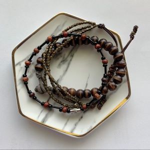 Bohemian Style Bracelets | {1} Leather + bronze metal beads (American Eagle) | {2} Wooden Beads + button closure (America Eagle) | {3} Black & Cognac Beads + Barrel Closure (this one is not American Eagle)