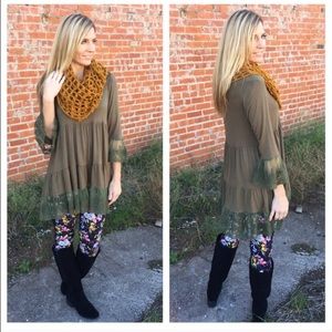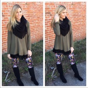 One size floral leggings . Super buttery soft leggings . These feel so amazing to wear. 92%polyester 8%spandex brand new with tags . Smoke free pet free home