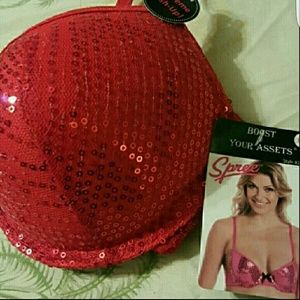 NWT BRAND NEW sexy red hot extreme push up bra with shiny red sequins and satin bow accent on front.