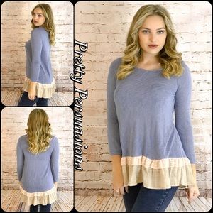 SOLD OUT Indigo Ruffle Hem Slub Knit Tunic Top