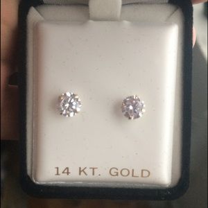 Brand New - These Simulated lab-diamond (not natural) stud earrings will leave you just breathless as their color and clarity. Cut: Brilliant | Round Color | Clarity: D | VVS1 Total Carat Weight: 2.0ct. | 1.00ct each stud Diameter: Approximately 6mm Metal: Yellow Gold | Solid NOT Plated or Filled Metal Purity: 14K | .585 Setting Type: Heavy Basket | 6mm Fasteningpp: Push back | Solid Gold Stamped: 14K