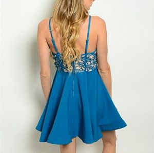 Gorgeous flowy dress with lace design top a small cut out in between the top and the skirt portion of the dress gives it a fun edgy look