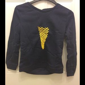The sweater is cotton blend, which gives it a little warmth with a little bit of shine. The sweater is fitted and it stretches. The pom-poms are removable, so you can where none, one or all three. (I prefer it with ☝️.) 😉 Available in sizes Small (manufacturer lists as size 4), Medium (manufacturer Iists as a 6) and large (manufacturer lists as an 8) available. Size small shown in picture. Model is 5'2, 132 lbs.