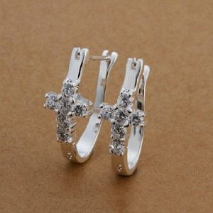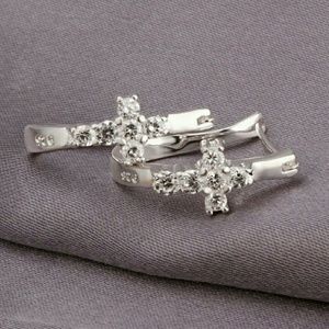 Earrings 925 Silver Plated Stud Dangle drop style. White Zircon gemstones.