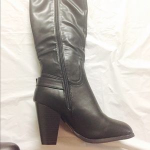BRAND NEW. BLACK boots comfortable heel Faux leather with zippers in the sides
