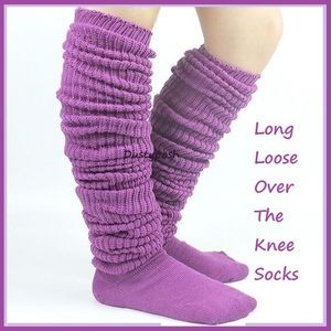Long loose Japanese ( yes from Japan not imitations ) schoolgirl socks. You will receive new never one pair in package. 100cm / 47" long. Can be worn thigh high or scrunched under the knee or scrunched down mid calf. Cosplay fun. Beige pair not as long, still super cute.