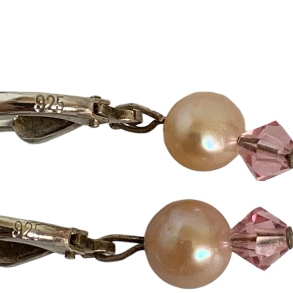 Vintage Pink Pearl Rose Quartz Drop Earrings Sterling Silver Chic New