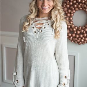 ❌SOLD OUT ❌ HIGH QUALITY BOUTIQUE ITEM NWT LUXE Light Stone Beige Lace Up Knit Sweater. 100% High Quality Acrylic "THE" Sweater to have! As seen on the bachelor