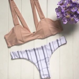 🌼 description: beige and striped sexy & very cheeky bikini. simple & chic!