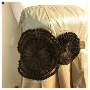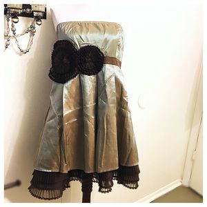 NWT (new with tags) Gorgeous short dress! Ryu: Anthropology style. • it is an iridescent metallic sage/ silver ish champagne sheen color with chocolate brown flowers & ruffles • side zipper & elastic back • A line cocktail evening party strapless dress, so elegant for Weddings, Christmas holidays / New Years parties,, Valentine's Day date, cocktail party, bridesmaid, prom homecoming , graduation, birthday • feminine fashion • Smoke & cat free home! • God bless & happy poshing!